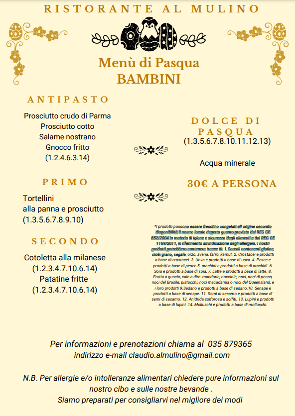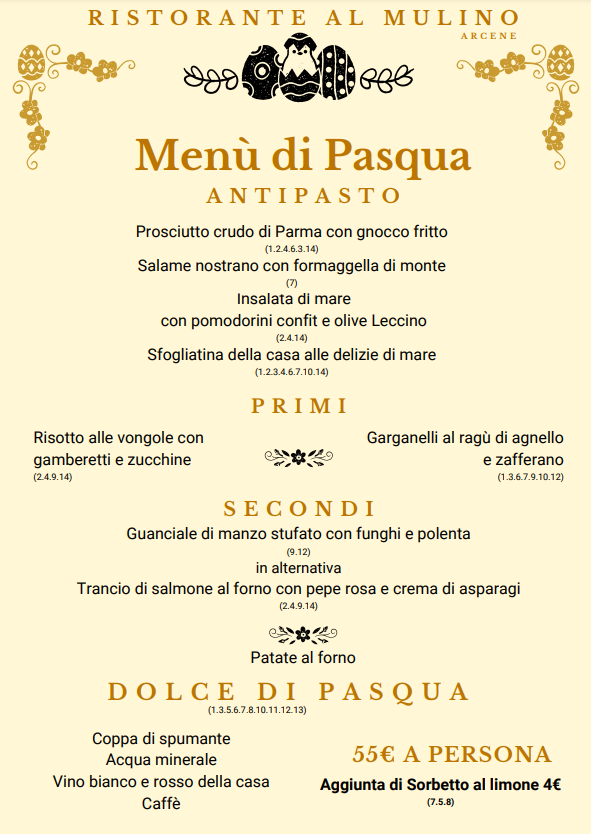 Al Mulino è possibile prenotare il pranzo di Pasqua a prezzo fisso.